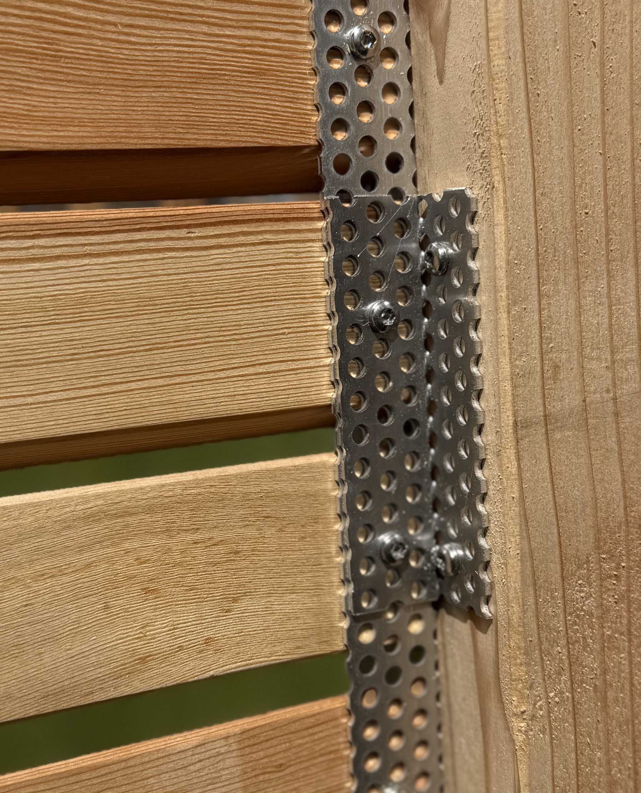 Die einzelnen Rhombusleisten werden rückseitig mit Edelstahlschrauben an