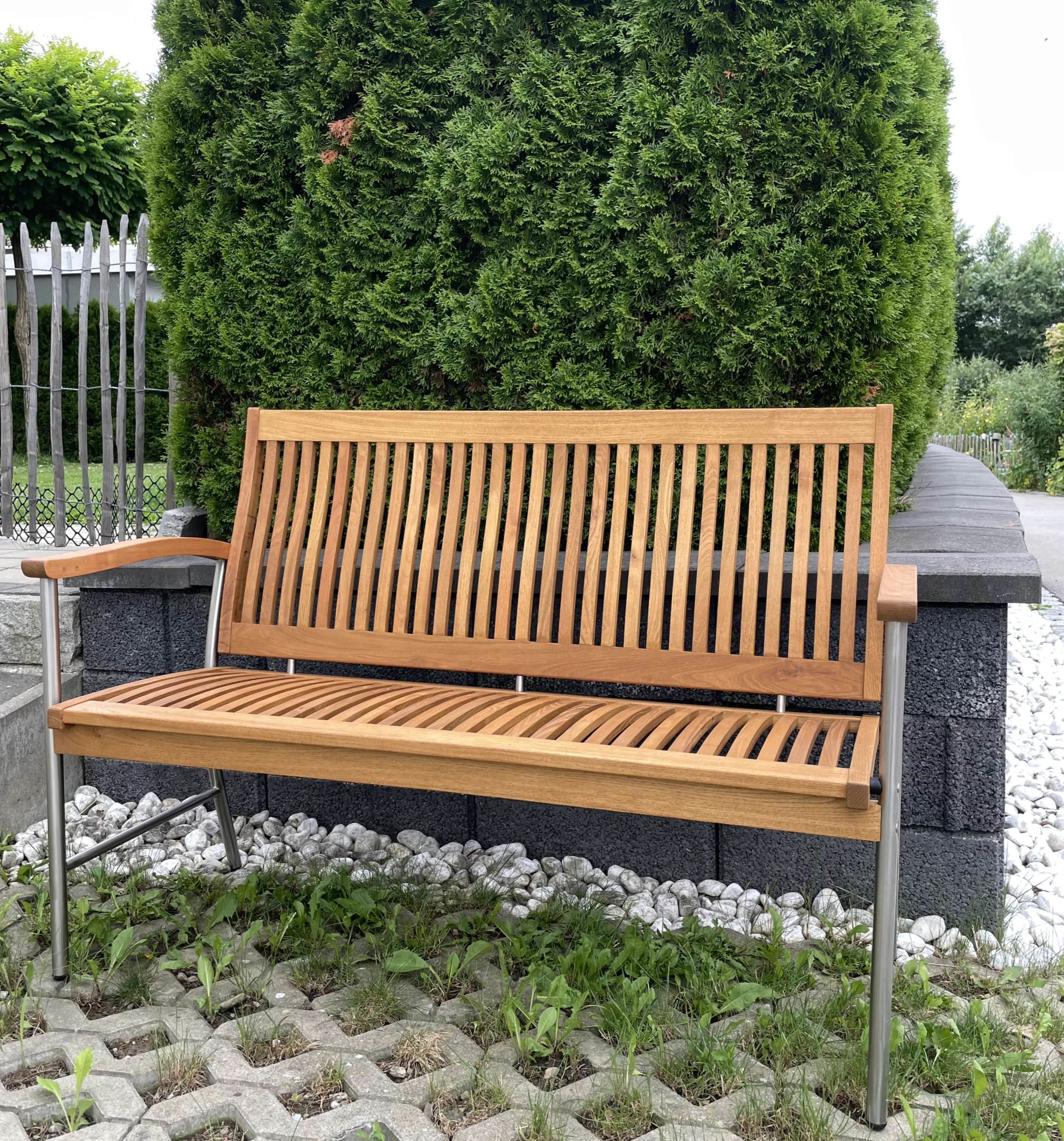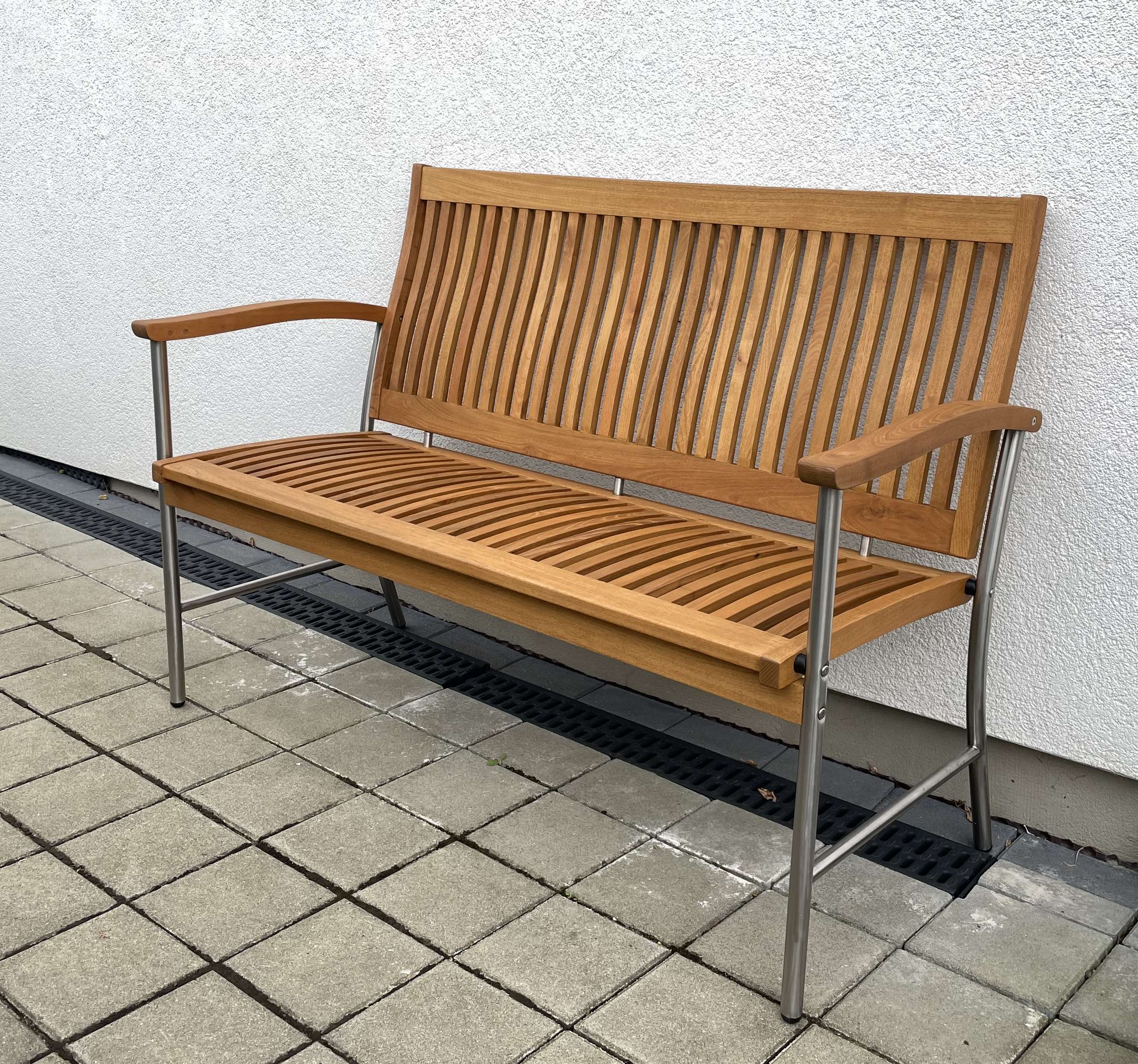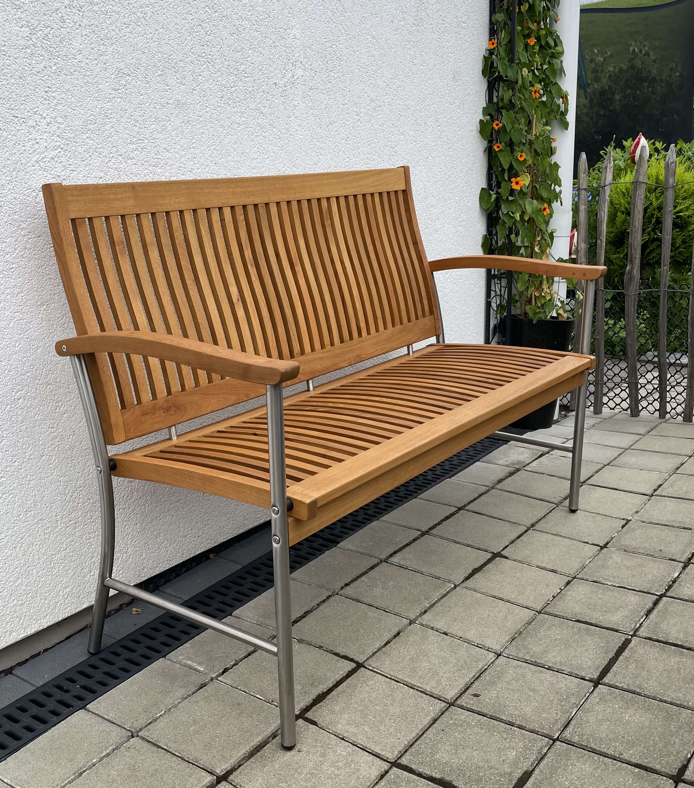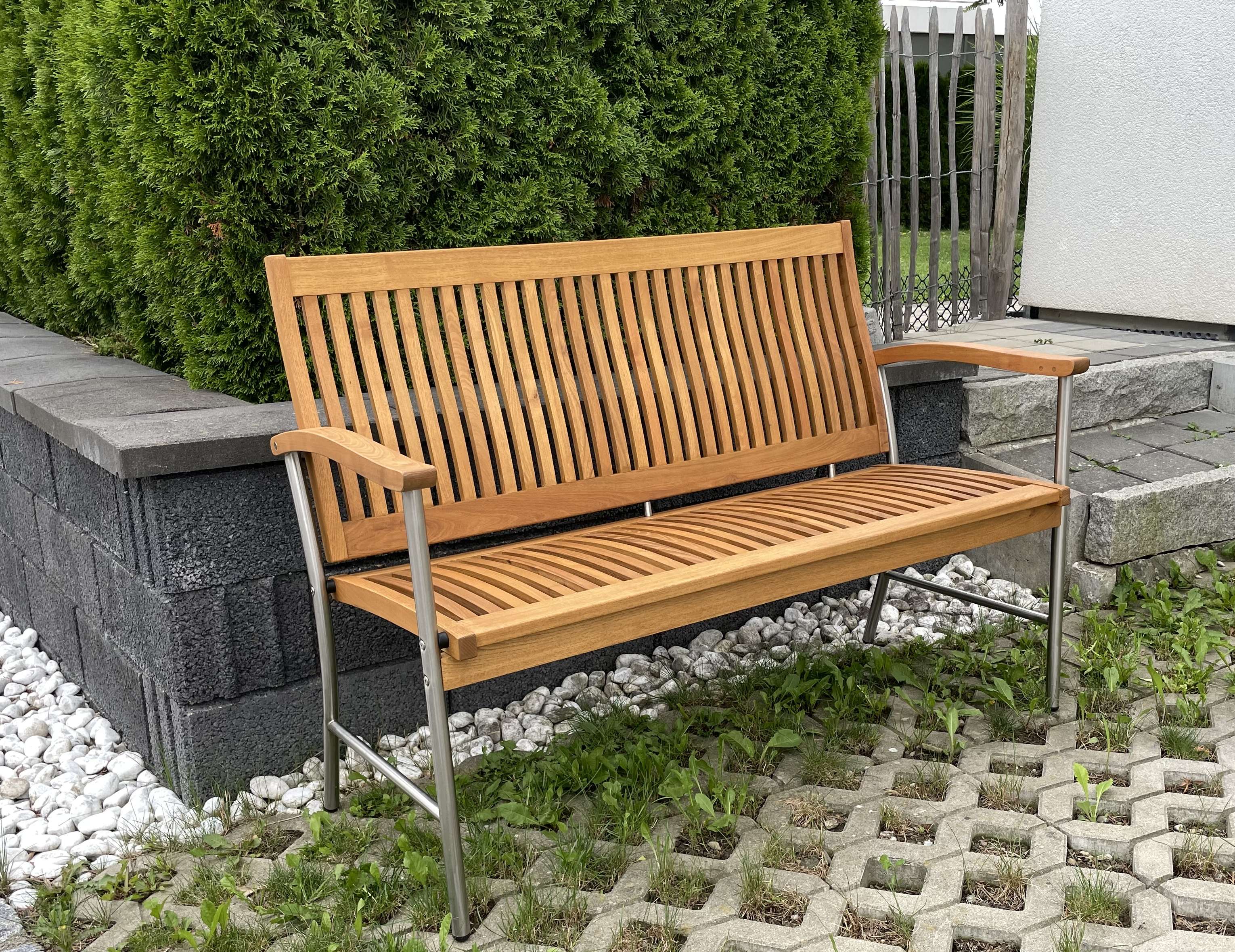 Gartenbank aus Robinienholz / Edelstahlgestell